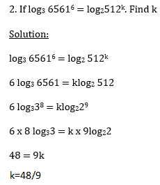 Form 2 Mathematics – LOGARITHMS msomimaktaba, November 13, 2018August 17, 2024 LOGARITHMSSTANDARD NOTATIONS Standard notation form is written in form of A x 10n whereby 1≤ A< 10 and n is any integersExampleWrite the following in standard form (i) 2380Solution: 2380 = 2.38 x 103(ii) 97Solution: 97 = 9.7 x 101(iii) 100000Solution: 100000 = 1 x 105(iv) 8 Solution: 8 = 8 x 100ExampleWrite the following in standard form(i) 0.00056 = 5.6 x 10-4(ii) 0.001 = 1 x 10-3(iii) 0.34 = 3.4 x 10 -1(iv) 2. 0001 = 2. 0001 x 100 EXERCISE 1:i). Write the following in standard form17000 = 1.7 x 104ii) 0.00998 = 9.98 x 10-3 iii). Write in standard form0.000625 = 6.25 x 10-48/300 correct to four significant figure8/300 = 0.02666Now 2.667 x 10-22.667 x 10-2iv) If a = br and a = 8.4 x 104 , b = 7.0 x 102 Find r.solution:a = 84 000b = 700Nowbr = a(700) (r) = 84000 r=120 r = 1.2 x 102DEFINITION OF LOGARITHMSConsider3 x 3 x 3 x 3 then3 x 3 x 3 x 3 = 34 = 81, the number 3 is the base ,and 4 is the exponent.Now we say;Logarithm of 81 to base 3 is equal to exponent 4log381 = 4 In short bn = alogba= nExample 1. Write the following in logarithmic formi) a5 = 10 loga10 = 5ii)10-3 = 0.001 10-3= 0.001 log100.001 = -3iii) 2-1 = ½ log21⁄2 = -1iv) 3 = 91/2 log39 = 1⁄2Example 2Write the following in exponential form (i) log3729= 6 36 = 729(ii) log31⁄3 = -1 3-1 = 1/3(iii) log100.01 = -2 10-2 = 0.01(iv)1⁄2 = log42 4(1/2) = 2Example 3If log100.01= y. Find ySolution:log100.01 = y10y = 0.0110y =1×10-210y=100×10-210y=10-2y= -2If log10x=-3 find xSolution: log10x = -310-3 = x x=0.001EXERCISE 1 1. Write in standard form i)405.06 ii) 0.912 Solution: i) 405.06 = 4.0506 x 102 ii) 0.912 = 9.12 x 10-12. Write in logarithimic form i)5-1 = 1⁄5 ii) 0.0001 =1 × 10-4 Solution: i)5-1 = 1⁄5 log5(1⁄5) = -1ii) 0.0001 = 10-4 log100.0001 = -43. Write in exponential form i) logax = n ii)-3 = log100.001 iii) log2(1⁄64) = -6Solution: i) logax = n an = xii)-3 =log100.001 10-3 = 0.001iii) log2(1⁄64) = -6 2-6 = 1⁄644. To solve for x i) log6x= 4 64 = x x = 1296ii)x = log36561 3x = 6561 x = 8iii)logx10= 1 x1 = 10 x = 10iv) log42 = x 4x = 2 22x = 21 2x= 1 x = 1⁄2BASE TEN LOGARITHM – Is an logarithm of a number to base 10. Also known as common logarithm example i) log105= log5 ii) log1075 = log75iii) log10p = log p SPECIAL CASES (1). logaa = x ax = a1 x = 1Generally logaa = 1Example i) log66 = 1 ii) log10 = 1(2) loga(an) = x ax = an x = nExample i) log4(45) = 5 ii) log10-3 = -3Example 1If log55 = log2m Find mSolution:log55 =log2mButlog55 = 11 = log2m21 = m1m = 2Example 2Given log525 + log4x = 6, Find xSolution:log525+log4x = 6log5(52)+log4x = 62log55+log4x = 62 +log4x = 6log4x = 4 x= 44x = 256EXERCISE 2.Evaluatei) log24096ii) log0.0001solutioni) log24096let x = log24096 2x = 40962x= 212x = 12∴log24096=12ii) log0.0001Solution:Let x = log0.0001 10x = 1/10000 10x = 1/(104) 10x = 10-4 x = -4∴log0001=12) If logk81 – log232= -1Solution: logk81 – 5log22 = -1 logk81 = -1 + 5 logk81= 4 k4 = 81 k4 = 34 k = 33. Given log6y = log7343. Find ySolution:log6y = 3log77log6y = 363 = y216 = yy = 2164) Solve for mi) log81 = m 8m = 1 since aº=1 then8m=80m=0ii) log5m + log327 = 8 log5m+ log333= 8 log5m +3 = 8 log5m= 5 m= 55m = 3125LAWS OF LOGARITHMSMULTIPLICATION LAWSuppose, logax = p and logay = q then logax= p….(i) logay= q….(ii) Write equation (i) and (ii) into exponential form. ap = x………(iii) aq = y……..(iv) Multiply equation (iii) and (iv)xy = ap x aq xy = a(p + q) …….(v)In equation (v) apply loga both sides loga (xy) = logaa(p + q) logaxy = (p + q) logaa logaxy= p + q But p = logax q = logay Examplei) log6(8 ×12) = log88 + log612 ii) log49 +log43 = log4(9 ×3)Example 1i)Find x , If log3x = log315 + log312Solution:log3x = log315 + log312 log3x = log3( 15 ×12) log3x = log3180 ∴x = 180Example 2Given log520 = log54 + log5x .Find xSolution:log520 = log54 + log5xlog520 = log5(4 × x) log520 = log54x ∴20 = 4xX = 5Example 3If log80.01= log8(m ×2). Find msolutionlog80.01 = log8( 2m)∴ 0.01 = 2mm = 0.01/2m = 0.005QUOTIENT LAWSuppose, logax= p and logay = q then logax = p……..(i) logay = q……..(ii)Write equation (i) and (ii) into exponent form ap = x……(iii) aq = y…..(iv)Divide equation (iii) and (iv) x/y = ap/aq x/y = a(p – q) ….. (v)In equation (v) apply log a both sides loga(x/y) = logaa(p-q) loga(x/y) = (p – q) logaa Butlogaa = 1 loga(x/y)= p – q ,where p= logax and q=logayi) log6( 8/12) = log68 – log612 ii) log49- log43 = log4(9/3)ExampleIf log220 = log2x – log28.Find xSolution:log220 = log2x – log28 log220 = log2(x/8) Now, 20 = x/8 X = 20 x 8 X = 160EXERCISE 3 1. Evaluatei) log63 + log62Solution:= log63 + log62= log6( 2 ×3)= log66 = 1ii) log 40 + log 5 + log40Solution:= log1040 + log105 + log1040 = log10( 40 ×5 ×40) =log108000iii) log1025 – log109 + log10360Solution:log1025 – log109 + log10360 log10( (25 ×360 )/9) =log101000 =log10103 =3log1010 =32. If log5ax = log5a9 + log5a12. Find xSolution:log5ax = log5a9 + log5a12 log5ax= log5a( 9 ×12) log5ax= log5a108 x = 1083. If log2a5 = log2ay + log2a0.001.Find YSolution:i) log2a5 = log2a(y×0.001)5 = 0.001yy= 5/0.001Y = 5000ii)Find y if log6100 = log65 + log680 – log6ySolution:log6100 = log6 (5 × 80)/ y100= 400/yy = 44. If log a = 0.9031, log b = 1.0792 and log c = 0.6990. Find log ac⁄bSolutionlog ac⁄b =log10 a + log10c – log10b =0.9031 +1.0792 -0.6990∴ log ac⁄b = 1.2833LOGARITHM OF POWERIf logax = p then X = ap Multiply by power in both sides xn = anpApply log a both sides logaxn = logaanp logaxn = npBut p = logax∴ logaxn= nlogax Example(1)Evaluatei) log2 (128)6 ii) log7 (343)8Solution i)log2 (128)6 = 6log2 27= (7 x 6) log22= 42 x 1= 42ii) Log7 (343)8 Solution: log7 3438 = 8log7 343 = 8log7 73 = (8 x 3) log7 7 = 24Example (2)If log5 625y = log3 7292 .Find y.Solution: log5 625y = log3 7292 log5 625y= 2log3 729 ylog5 54 = 2log3 36 (y x 4) log5 5 = (2 x 6) log3 3 4y log5 5 = 12 log3 3 4y = 12y=2/4y = 3LOGARITHM OF ROOTSExample 