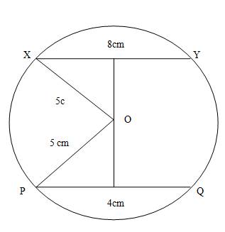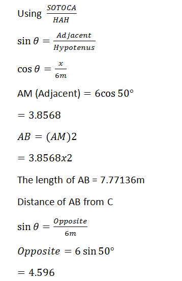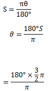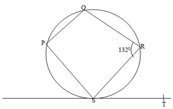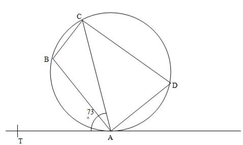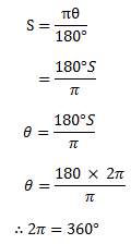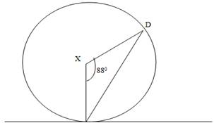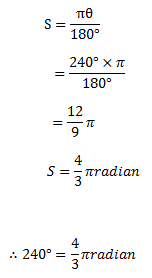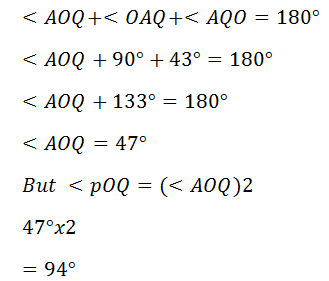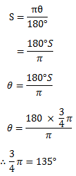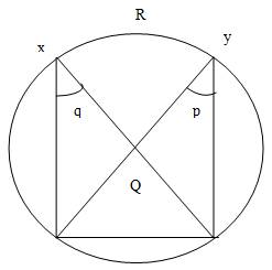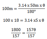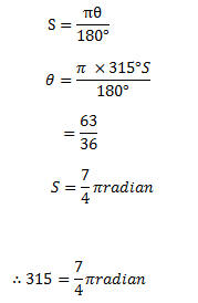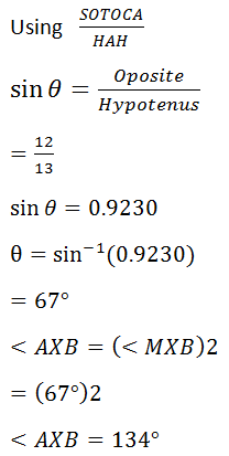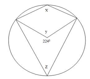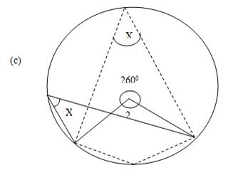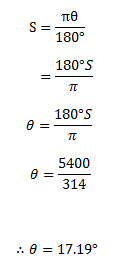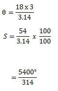 Form 3 Mathematics – CIRCLE msomimaktaba, November 13, 2018August 17, 2024 CIRCLE DEFINITION AND PROPERTIES OF A CIRCLEA circle can be defined in two ways.A circle: Is a closed path curve all points of which are equal-distance from a fixed point called centre OR– Is a locus at a point which moves in a plane so that it is always of constant distance from a fixed point known as a centre. O – Is called the centre of the circle.OP – Is the line segment is the radius.AB – Is the line segment of diameters of the circle.O – (Centre) – Is a fixed point of circle.OP (Radius) – Is the constant distance from the centre to any point on a circumstance of a circle.AB (Diameter) – Is a line segment which passes through the centre of a circle.A circumference – Is a length of a locus which moves around the centre.Diameter =2 x RadiusD = 2rHence the diameter of a circle is equal to two times radius. RS (Secant) – Is a line segment whose points are on the circle.BOC – Is called a central angle(PTQ) – A Segment – Is the part of a circular region included within the chord and its arc.(COB) Sector – Is the part of a circular region bounded by two radii and an arc. CENTRAL ANGLEConsider a circle of radius r, length of arc l, subtending a central angle. – The length of the circumference C of the circle is C = 2πr. This means that the length of the arc intercept by a central angle 360º is 2πr.– The length of an arc is proportional to the measure of the central angle of the central angle. Thus if the central angle is 1Example 1.An arc subtends an angle of 200 at the centre of a circle of radius 25m.Find the length of the arc.Length of an arc is given by = Length of an arc = 8.72mAn arc of length 5cm subtends 50º at the centre of a circle. What is the radius of the circle. Data θ=50ºLength = 5 cmRadius = requiredLength of an arc is equal to=5.73cmExample 3A circular running track has radius 50m. A sprinter runs 100m along the track.Through what angle has she turned?Radius = 50mLength of an arc = 100mθ= RequiredLength at an arc is equal to The central angle is 114 .650 Questions:1. An arc subs tends 25 at the centre of a circle of radius 40m. What is the length of the arc? DataLength of an arc = requiredRadius = 40mθ=- 25Length at an arc is equal to The length at an arc = 17.44m 2. An arc of length 17cm forms a circle of radius 40cm what angle does the arc subtend? Data :-Length of an arc = 17cmRadius = 40cmθ= RequiredLength of arc is equal to The arc subtends 24.330 3. An arc of length 16m subtends 400 at the centre of the circle. What is the radius at the circle? DataLength an arc = 16mRadius = Requiredθ= 400Length of arc is equal to The radius = 22.85m RADIAN MEASUREAngles can also be used to measure the amount of turning. Turns of a minute hand of a clock and a wheel can be measured in both angles and radians. Example a minute hand of clock turns through an angle of 90º 0f ½ π radians between noon and 12:15pm as shown in the figure.– The tip of the hand has covered a distance of ½ π radians. From noon to 12:45 pm, the hrs turned through an angle of 270ºor 3/2πr radians. The angle 270º is reflex angle. – One complete turn at hand clock represents an angle of 360º or 2π radians.– Measures of angles more than 3600 or 2 π radius can be obtained if hand of a clock measures more than one complete turn. Example from noon to 1:15 pm, the hand has turned through 1 ¼ turns. Now one turn is 3600 or 20 radians.– 5/4 turns or 3600 x 5/4 0r 2π x 5/4 radians which reduce to 450º 0r 5/2π radians.– There fore from noon to 1:15 pm the hand turns through 450º or 5/2π radians. Questions 1. Give the size in degree at an angle through which a minute hand of a clock has returned between noon and the following times.(a) 12:40Solution:1min = 640min =?X= 40min x 6X = 240(b) 3:00 Solution1hour = 3603 hour =?X = 3 hour x 3600X = 10800 (c) 9:00 Solution1hour = 36009 hour =? XX = 9 x 3600X = 324002. Give the size in radians at angles through which the minute hand of a clock has turned between noon and the following times.(a) 12:20pm Solution1min = 6020 min =? XX= 20min x 6X = 1200πrad = 180º? = 120º x = π rad x 120X = 2/3 π rad (b) 2:15 Solution1hour = 60 min2 hour =? Xx =60 x 15minX =120 120 x 6º=720º = 7200 +90º = 810º (c) 24:00 noonSolution1 hour = 360024hrs = ?X = 3600 x 20= 86400πrad = 1800?x = 86400x = 86400 x πrad X = 48πradRADIAN MEASURE– The relation between the arc length l, the central angle θ, and the radius r, can be used to compare the measurement of an angle in radius with the measurements in degree.Circumference of the circle for the given radian C = 2πr. Circumference sectorBut C = length at an arc In abbreviation is written as:-S = is radian measured of an angleθ= is the degree measure θ= 17 .190The angle in degree is 17. 190 Class Activity:-1.Find the degree of each of the following :-(i) 3/2πSolution:-= 900 x 3= 3/2π = 2700(ii)¾πSolution ¾ π = 1350Example 1:Find in radian as multiple of π for each of the following degrees.(a) 3150 (b) 2400Solution: (b) 2400Solution:- 2. Change the following radians into degree(a) 0.3 (b) 5 solution Class activity.1. Find the degree of each of the followingi) 3/2πSolution. ii 3/4 πSolution iii) 2 πSolution 2.Find the radians multiple of the π following(i)80° Solutionii) 215ºSolution iii) 600Solution3. (i) Change the radians into the degree of 0.3 ∴The angle the degree = 540 (ii) 5 Solution The angle degree = 9000ANGLES IN CYCLIC QUADRILATERALThese are four angles whose vertices are lying on the circumference of a circle. The angles p, q, r, and t are called cyclic angles in a quadrilateral ABCD, q and t, p and r are opposite angles. 1. THEOREM:The opposite angles of a cyclic quadrilateral are supplementary (add up to 1800).Given; A quadrilateral SPQR inscribed in a circle centered at 0Required to prove: x+ y = 1800Constuction; join OR and OPProof: in the above figurea = Zx (angle s on a